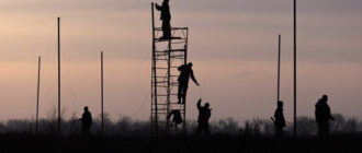 Кілзона Донбас. Репортаж про те, чому війна роботів неможлива без людини Військові інженерного підрозділу натягують сітки над однією з доріг Донеччини. Через велику кількість дронів Новости Донецка