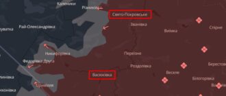 Сили оборони відійшли із Свято-Покровського, проте тримають позиції в Васюківці на Донеччині — УВ «Схід» Васюківка та Свято-Покровське відносно лінії зіткнення, кінець березня 2026 року. DeepStateMap Також в УВ Новости Донецка