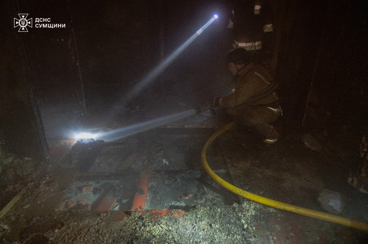 В Сумах ранним утром 11 декабря прогремел взрыв, после того как в регионе были зафиксированы ударные российские БПЛА, летевшие с востока в юго-западном направлении. По данным ГСЧС, произошло возгорание двухэтажного нежилого здания, специалисты обследовали территорию, по которой был нанесен удар, и с помощью специального инструмента спасатели срезали аварийные конструкции перекрытий. Все очаги горения ликвидированы.
