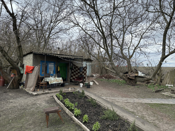 “Я вже звикла тут. Відремонтувала хату — стіна відлетіла повністю, взяла цементу. По 90–100 років будинку. Замазую, затираю, бо все тріщить. А як бахнуть — так і сипеться. А що ти зробиш? Нічого не зробиш”, — говорить Лідія.