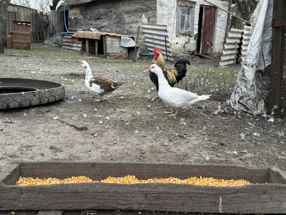 "Гуляють, копирсаються. Ген — кури. У мене 25 штук, вони розбрелися, хто куди. Охоронець хороший у мене — Полкан".