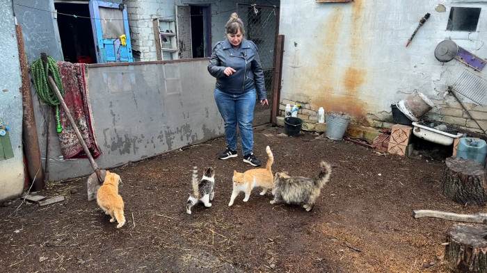 Марина годує котиків. Суспільне Донбас