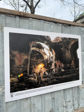 До виставки увійшли 30 фотографій, розміщених на фрагментах посічених уламками парканів, привезених із Донеччини, розповіли у корпусі. Кожен кадр — це конкретний епізод майже дворічної оборони Часового Яру: люди, місця та наслідки безперервних боїв, йдеться у повідомленні.