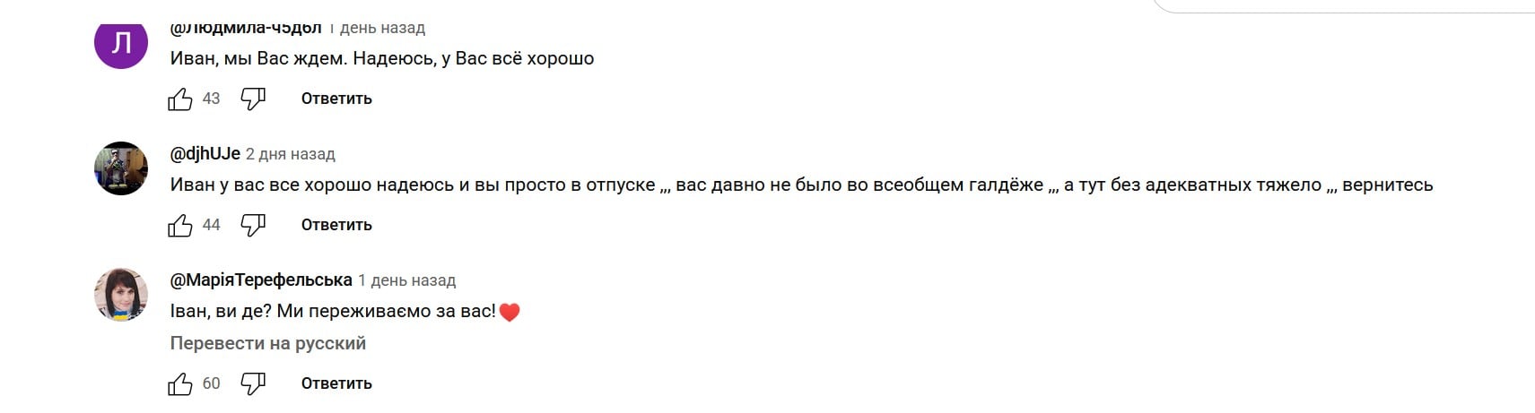 Іван, відгукніться, всі хвилюються за Вас!» — пишут встревоженные подписчики.