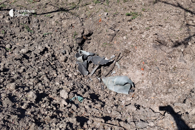 Уламок боєприпасу на місці удару РФ по Краматорську 6 квітня 2026 року. Суспільне Донбас/Олена Зайцева