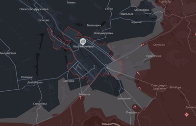 Орієнтовна лінія фронту навколо Костянтинівки. DeepStateMap"У звʼязку з поганими погодніми умовами саме на сході, ворог суттєво збільшив обстріли із артилерії різних калібрів. Щодоби ми фіксуємо близько трьох сотень обстрілів позицій наших військ, і це тільки в нашій смузі відповідальності", — сказав Дмитро Зінюк.