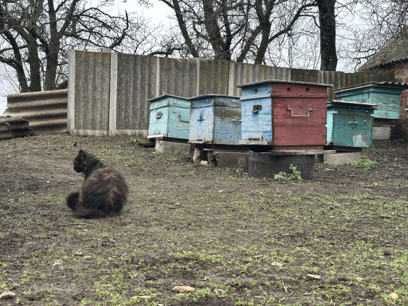 Окрім пасіки, у господарстві чоловіка є кури, десять котів та двоє собак — Бася і Бой. Сергій каже: тварини звикли до війни: