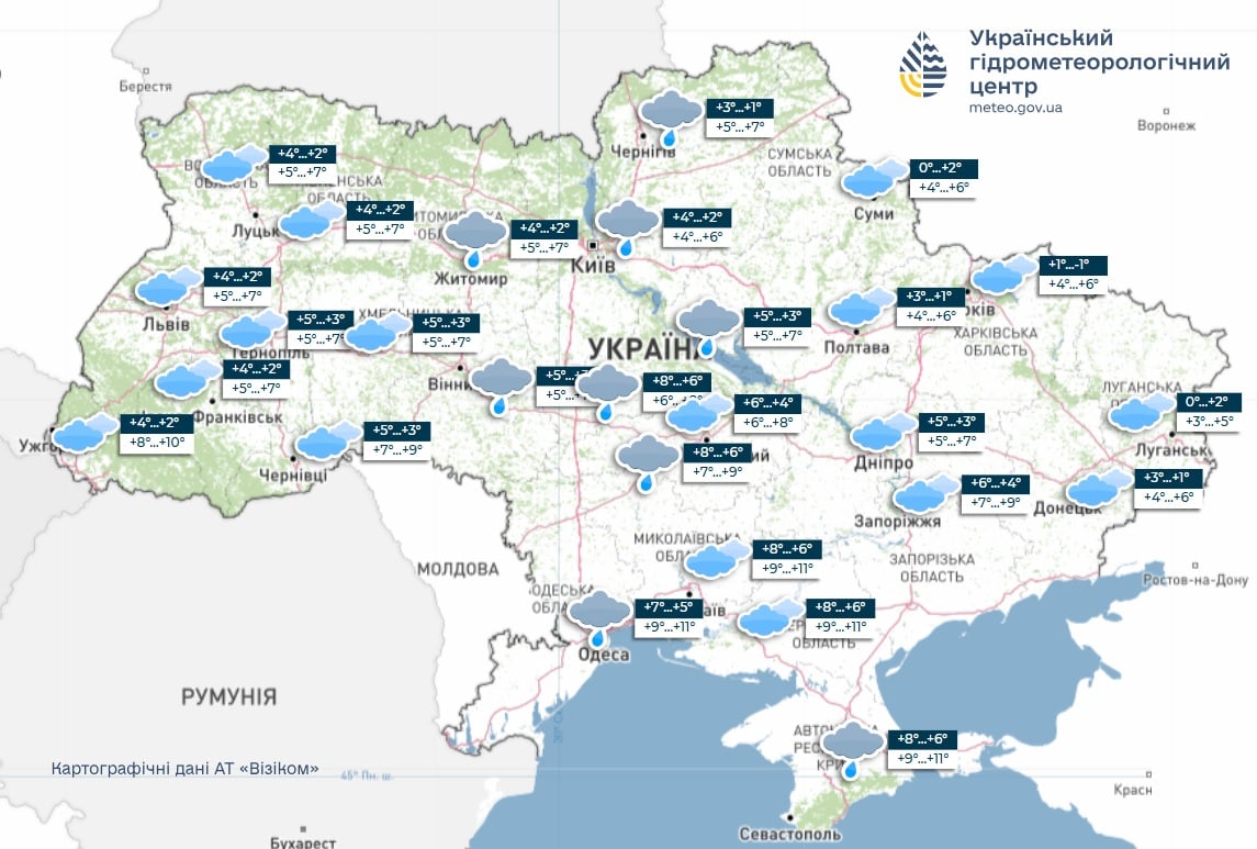 По данным Укргидрометцентра, в большинстве областей осадков не ожидается, максимум возможны локальные «островки» дождевой мороси — короткие, незначительные, без последствий. Ветер юго-восточный, умеренный, местами порывистый.