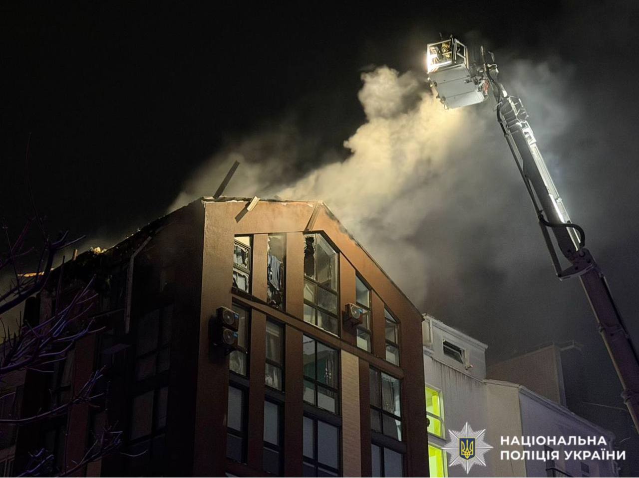 Наиболее тяжелые последствия зафиксированы в Бучанском районе: в Белогородской громаде дрон типа «Герань-2» стал причиной пожара в квартире на седьмом этаже многоэтажного дома. В ходе тушения огня спасатели обнаружили тела двух погибших. Еще четверо пострадали: женщина, двое малолетних детей, 2016 и 2021 годов рождения, а также мужчина, получивший отравление продуктами горения. Пожар, охвативший площадь около 600 кв. м, удалось ликвидировать к 05:15.