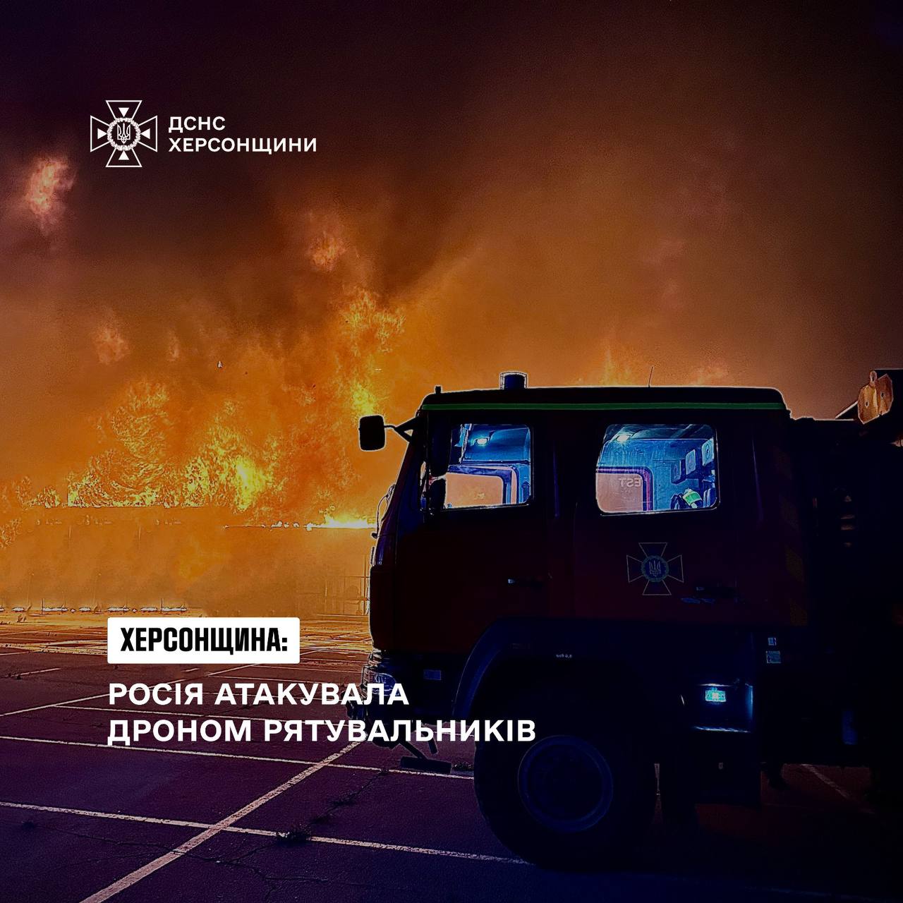 В ГСЧС сообщили, что в Херсоне в ночь на 17 октября после удара российских дронов возник пожар в многоэтажке, повторно оккупанты ударили по спасателям, поврежден пожарный автомобиль, пострадавших нет.