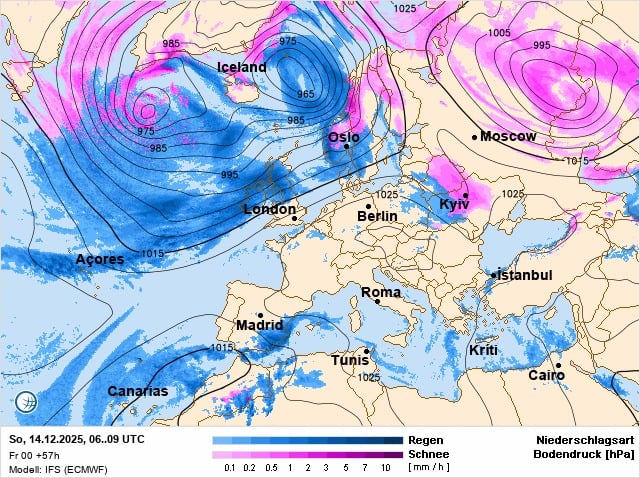 В воскресенье, 14 декабря, ситуация изменится, на севере, западе и в центральных областях прогнозируются снег и налипание мокрого снега, на дорогах возможен гололед. В отдельных районах Харьковской и Запорожской областей также ожидаются осадки в виде мокрого снега. На юге пройдет дождь, в Запорожской области с мокрым снегом.