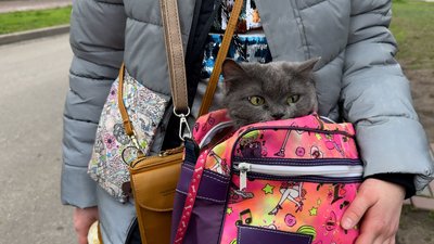 Разом із ними евакуюється і кішка Єва — її родина забрала торік у людей, які також виїжджали.