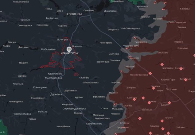 Краматорськ на мапі аналітичного проєкту DeepState 29 березня 2026 року. Скрін з мапи DeepState
