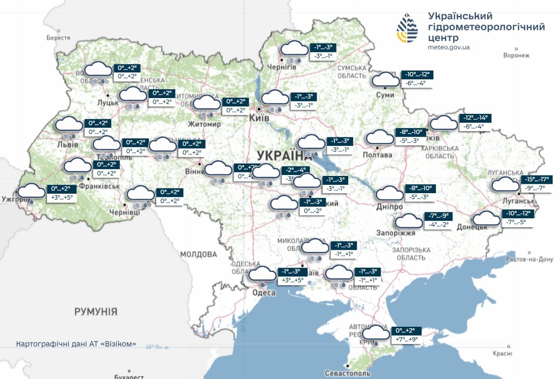 Украина входит в короткую, но заметную оттепель: во вторник, 27 января, морозы ослабнут почти повсюду, но вместе с теплом придут мокрый снег, дождь и гололед.