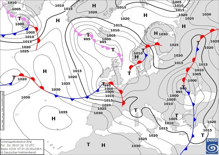 8 января в Украину придет южный циклон, который создаст сложную синоптическую картину. На западе ожидается снег, на севере и в Винницкой области — мокрый снег, а на остальной территории страны пройдут дожди. Осадки местами будут сильными, возможны налипание мокрого снега, гололед и обледенение дорог.