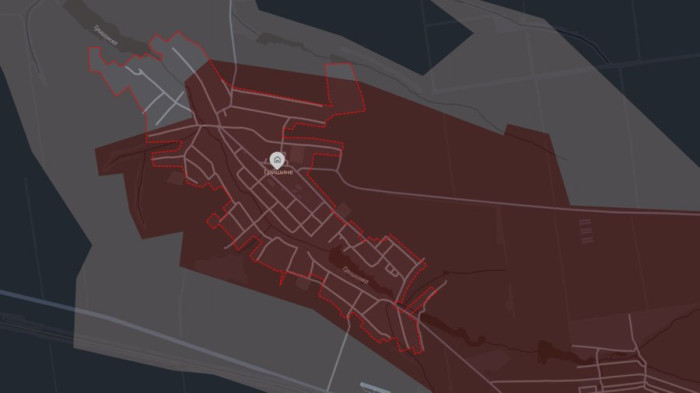 Селище Гришине та річка Гришинка у Донецькій області на мапі аналітичного проєкту DeepState 15 квітня 2026 року. Скрін з мапи аналітичного проєкту DeepState