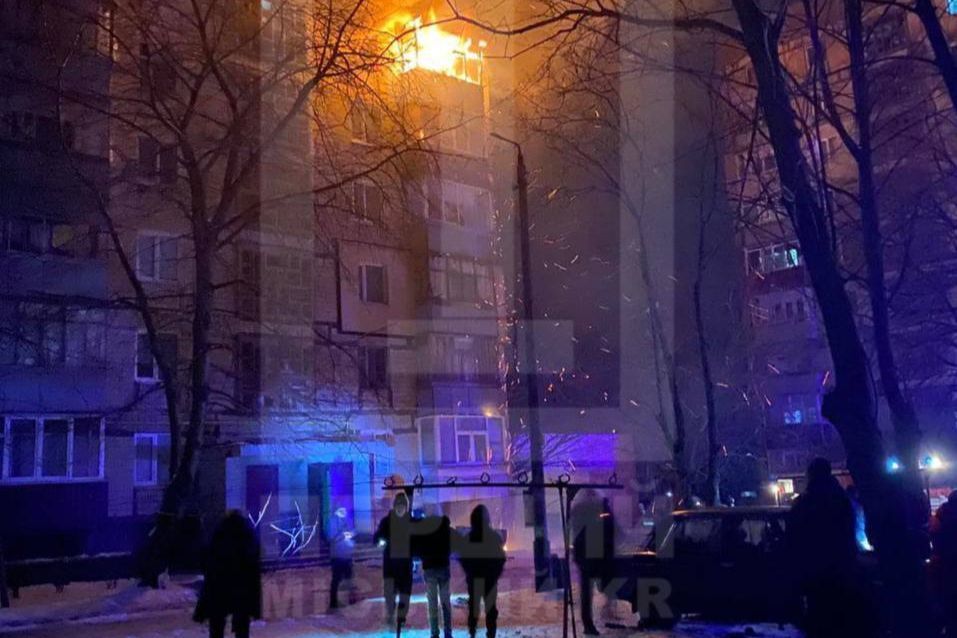 Судя по опубликованным кадрам с места, дрон-камикадзе попал по шестому этажу жилого дома, балкон охватил огонь. О пострадавших информации пока не поступало.