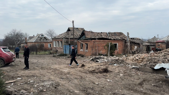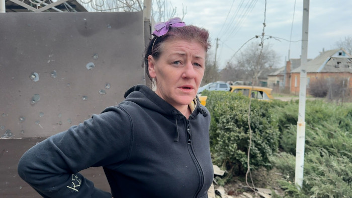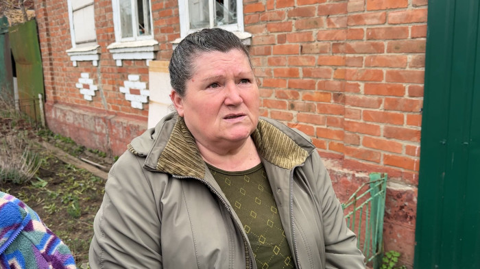 Місцева жителька Марія розповідає: в одному з пошкоджених будинків мешкає родина переселенців.