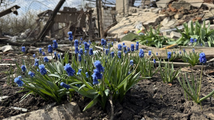 Гадюча цибулька квітне на руїнах будинку у Донецькій області 11 квітня 2026 рік. Суспільне Донбас/Юлія Підгола