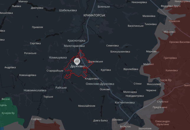 Місто Дружківка на мапі аналітичного проєкту DeepState 7 квітня 2026 рік. Скрін з мапи DeepState