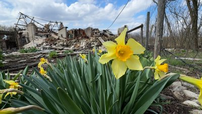 Квіти на зруйнованому подвир’ї Аїди. Суспільне Донбас
